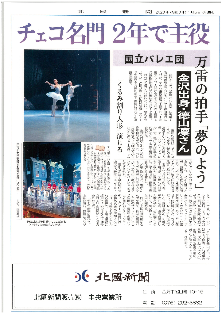 金沢から世界へ!ハナヨバレエ出身の徳山凛さんが、名門「チェコ国立バレエ団」に入団わずか2年で『くるみ割り人形』の主役に抜擢されました✨